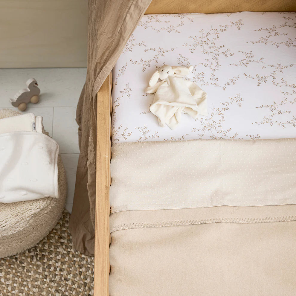 Die hochwertige Verarbeitung garantiert Langlebigkeit und Formstabilität, selbst nach vielen Wäschen. Sie kann bei 40 Grad in der Maschine gewaschen und im Trockner getrocknet werden, wodurch sie dauerhaft weich und hygienisch bleibt. Eine stilvolle und praktische Wahl für Eltern, die Qualität und Natürlichkeit schätzen.