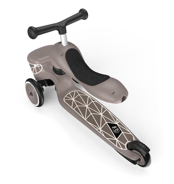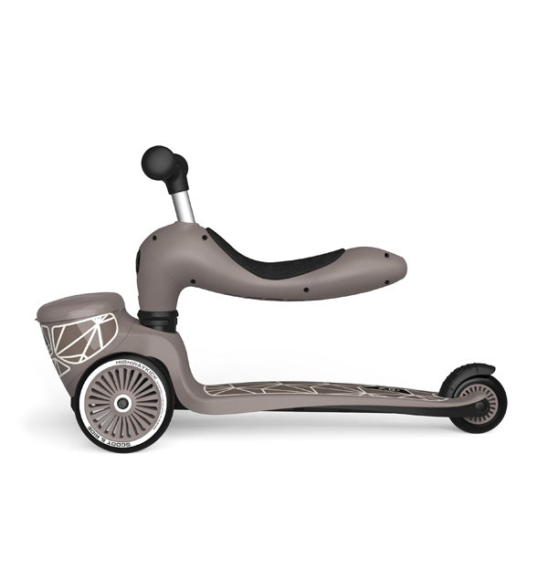 Die Lifestyle Variante des Highwaykick lässt sich kinderleicht ohne Werkzeug vom Scooter in einen Roller mit Sitz umbauen. Die Sitzhöhe und Lenkstange sind jeweils dreifach höhenverstellbar, sodass der Roller mit deinem Kind mitwächst. Die Lenkung durch Gewichtsverlagerung macht das Fahren besonders einfach und sicher. Das Griptape am Trittbrett sorgt für einen optimalen Halt. Der Highwaykick 1 Lifestyle vereint somit Sicherheit, Komfort und eine praktische Aufbewahrungslösung – für kleine Entdecker, die immer alles dabei haben möchten!