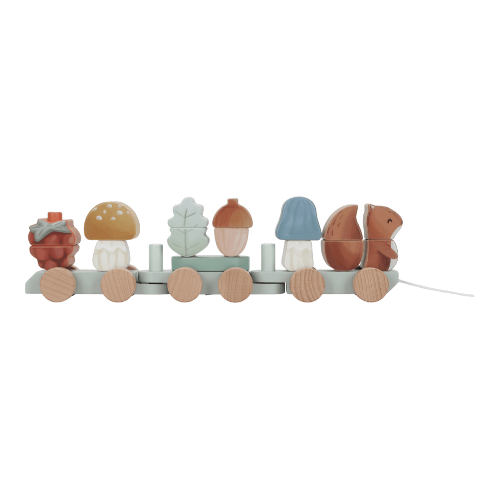 Personalisierter Holz-Zug „Eichhörnchen Forest Friends“ zur Taufe hochwertiges Taufgeschenk von Little Dutch mit Lasergravur.