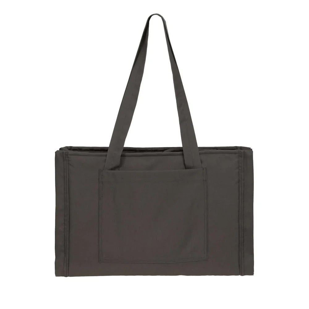 Die Hundemattentasche Nobo in Anthrazit von Palopa ist die perfekte Lösung für unterwegs. Ob im Urlaub, im Auto oder beim nächsten Ausflug, sie vereint praktische Funktion mit hohem Komfort. Mit wenigen Handgriffen wird die Tasche zu einer bequemen Matte, sodass dein Hund jederzeit einen vertrauten Platz zum Ausruhen hat. Die breiten Henkel sorgen für ein angenehmes Tragegefühl und dank des großzügigen Volumens von zwanzig Litern lassen sich alle wichtigen Utensilien problemlos verstauen. Auch Leckerlis, Schlüssel oder das Smartphone finden in den Außentaschen genügend Platz.