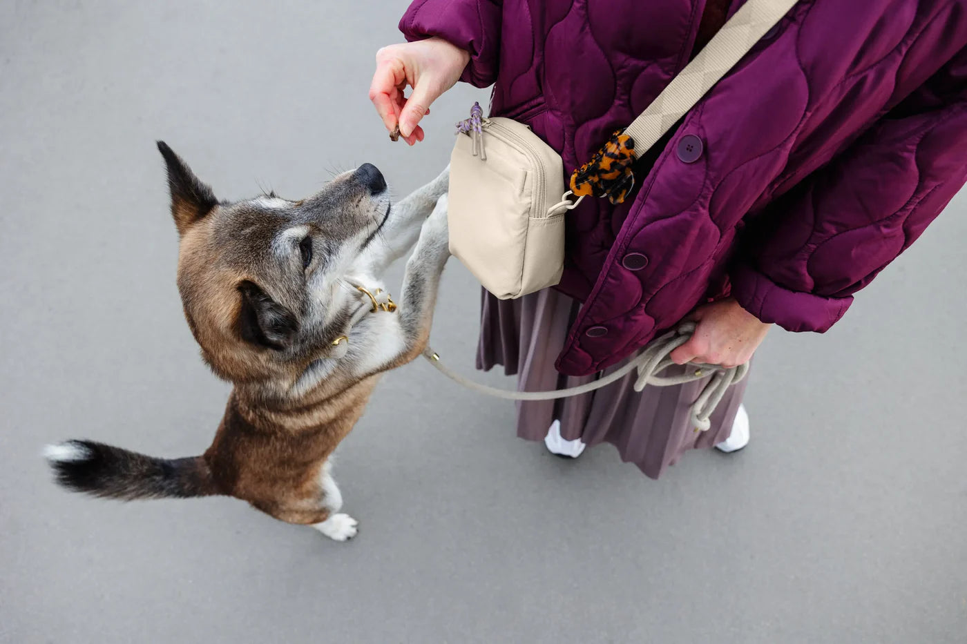 Dank Karabinerhaken und abnehmbarem, längenverstellbarem Schultergurt bietet Greta flexible Tragemöglichkeiten. Sie lässt sich am Gürtel, an den Gürtelschlaufen oder bequem über der Schulter tragen. Das robuste Material ist schmutz- und wasserabweisend, schnelltrocknend und besonders pflegeleicht – perfekt für jede Alltagssituation mit Hund. Die Leckerlitasche Greta wurde gemeinsam mit Hundeexpertinnen und Hundeexperten entwickelt und ist in verschiedenen Farben erhältlich. Sie kombiniert Funktionalität mit stilvollem Design und macht Training und Spaziergänge komfortabler.