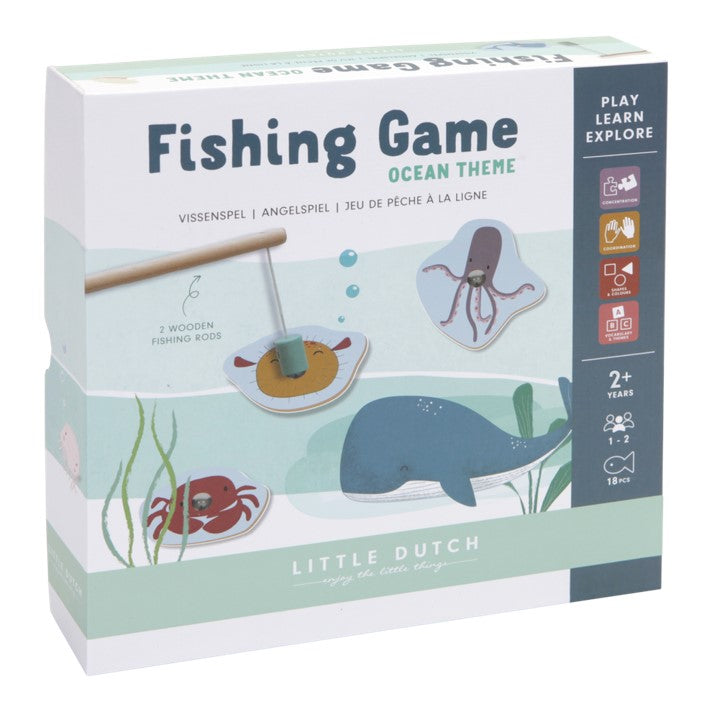 Das Angelspiel von Little Dutch lädt Kinder dazu ein, in die spannende Welt unter Wasser einzutauchen und spielerisch ihre Geschicklichkeit zu trainieren. Mit liebevoll gestalteten Figuren wie bunten Meerestieren und kleinen Überraschungen wird jedes Spiel zu einem besonderen Erlebnis. Ziel ist es, so viele Tiere wie möglich zu angeln, während man versucht, den alten Schuh zu vermeiden.