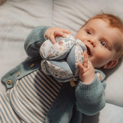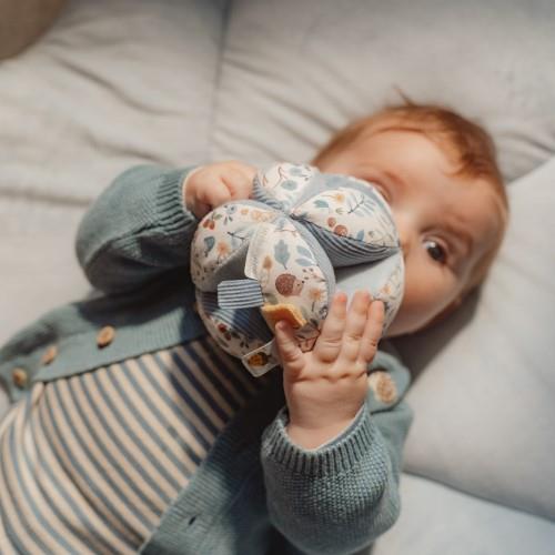 Der Little Dutch Greifball Rassel in Blau aus der Forest Friends Kollektion ist ein vielseitiges Babyspielzeug, das die Sinne anregt und spielerisch die Entwicklung unterstützt. Durch seine besondere Form bietet er viele Stellen zum Greifen und Entdecken, was kleine Hände herausfordert und die Feinmotorik fördert.