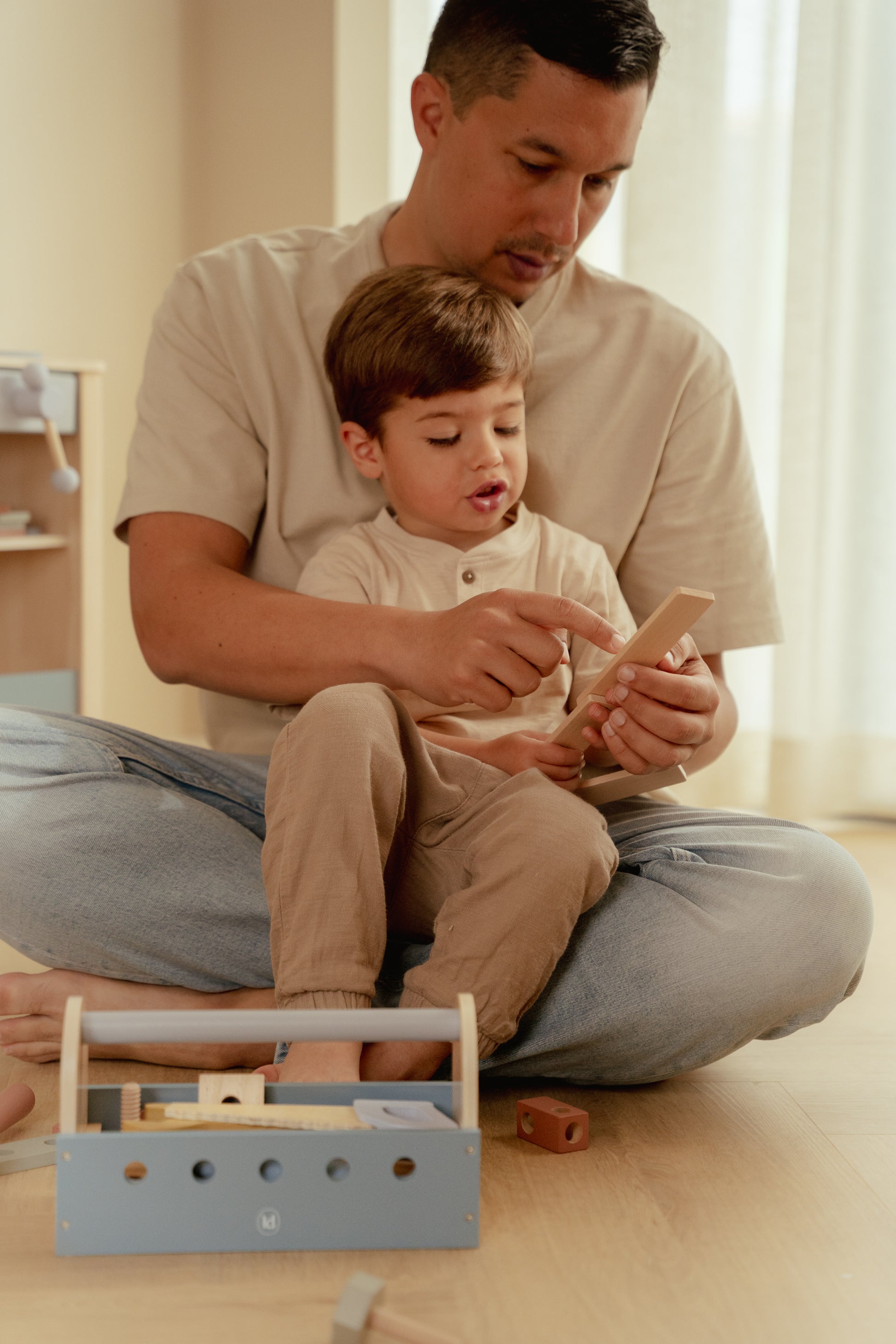 Alles, was ein kleiner Handwerker oder eine kleine Handwerkerin braucht! Dieser Holz-Werkzeugkasten enthält einen Hammer, einen Schraubendreher und einen Schraubenschlüssel – perfekt für das Bauen der schönsten Kreationen. Doch das ist noch nicht alles – die Seiten der Kiste können auch als Hämmerbank genutzt werden! So können die Kleinen hämmern und schrauben, während sie spielerisch ihre Motorik und Kreativität entwickeln. Bereit, loszulegen?