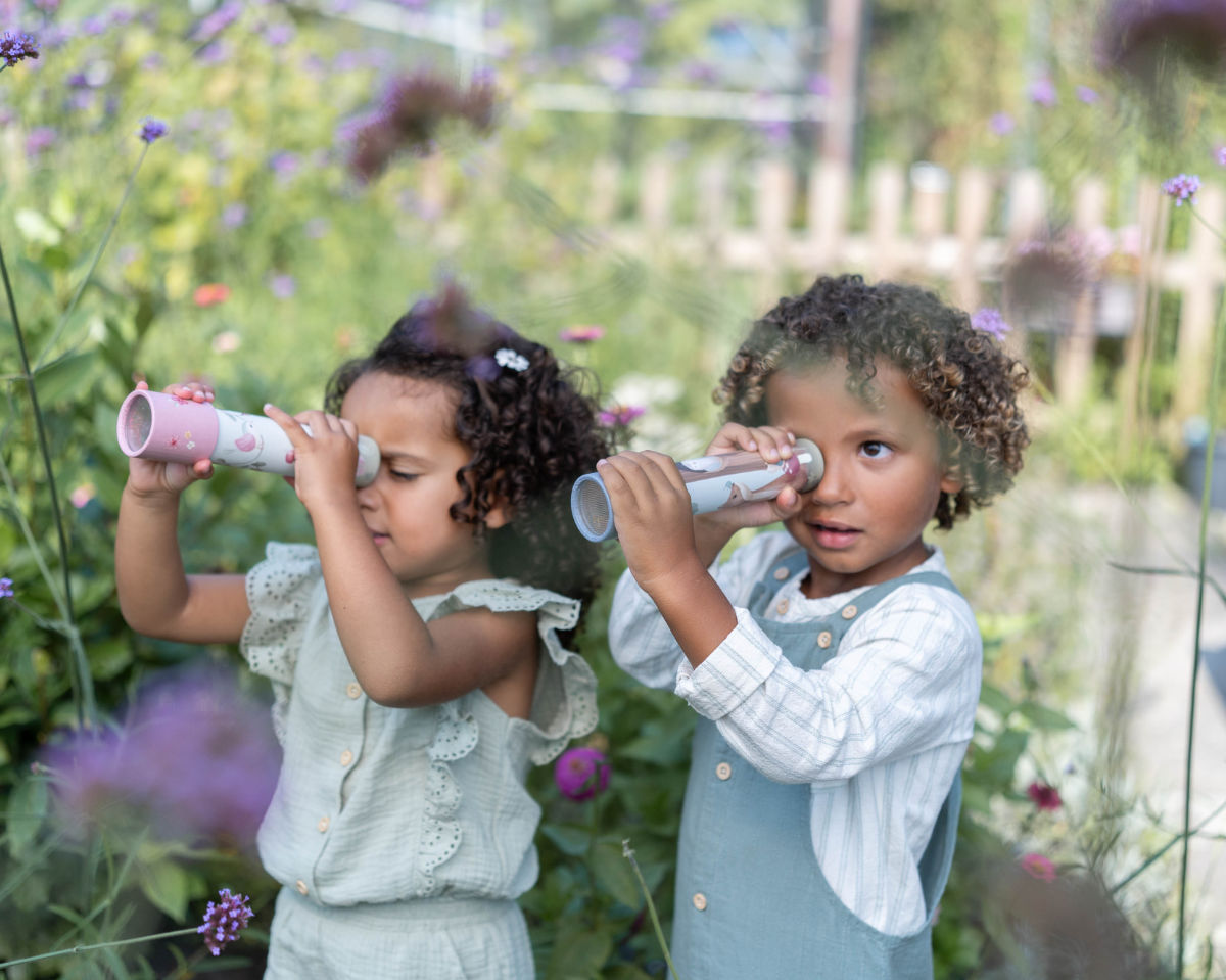 Schau, wundere, entdecke! Entdecke eine Welt voller Farben und Muster mit diesem Kaleidoskop. Drehen und kippen Sie es, um jedes Mal etwas Neues zu sehen. Perfekt für neugierige Kinder und für kleine Hände gemacht.