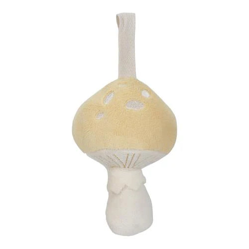 Zwei Kordbögen tragen fünf niedliche Stofftiere, darunter ein Reh, ein Vogel, eine Blume, ein Pilz und eine Erdbeere. Mit ihren unterschiedlichen Formen, Farben und Texturen regen sie die Sinne an und fördern spielerisch die Hand-Augen-Koordination sowie die motorische Entwicklung.