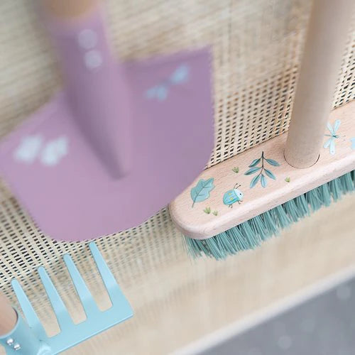 Entdecken Sie die rosa Schaufel aus der Gartenkollektion für Kinder von Little Dutch! Diese Schaufel hat einen robusten Holzgriff und ein Metallblatt, perfekt für kleine Hände. Dekoriert mit schönen Illustrationen von Blättern und einem niedlichen Käfer, inspiriert von der Fairy Garden Collection. Egal, ob Ihr im Garten arbeiten oder in der Sandkiste spielen wollt, diese Schippe ist immer praktisch. Der Griff oben sorgt für einen guten Griff und macht es noch einfacher zu erstellen. Ein unverzichtbares Werkzeug für junge Entdecker & Gärtner!