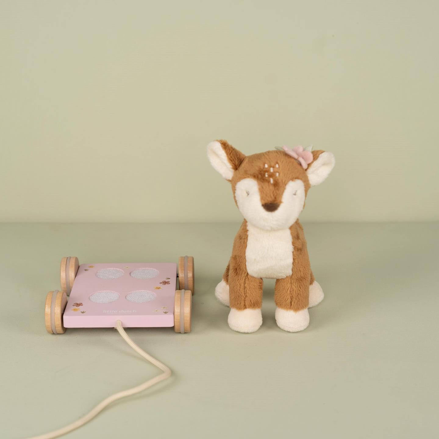 Das Little Dutch Nachziehtier Reh in Rosa aus der Fairy Garden Kollektion lädt Kinder zu fantasievollen Abenteuern ein. Mit seiner weichen, kuscheligen Figur und dem rosafarbenen Holzwagen mit Blumenmotiv wird das Reh schnell zum treuen Begleiter.