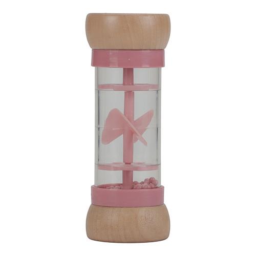Beim Drehen der Rassel rieseln kleine Kugeln durch die Röhre, setzen einen Propeller in Bewegung und erzeugen dabei das typische Geräusch eines sanften Regens. Dieses akustische Erlebnis fördert die sensorische Entwicklung, regt das musikalische Talent an und schenkt Babys Freude am Klang.