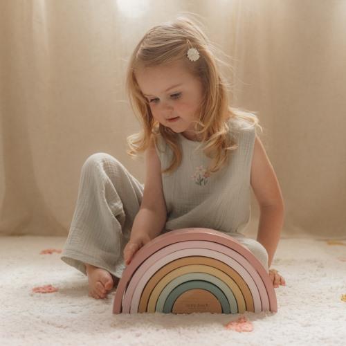 Der Little Dutch Stapel Regenbogen in Rosa aus der Fairy Garden Kollektion lädt Kinder zum kreativen Spielen ein und bietet unendlich viele Möglichkeiten. Die Bögen in zarten Rosa-, Gelb- und Grüntönen lassen sich nicht nur zu einem Regenbogen stapeln, sondern auch für fantasievolle Konstruktionen verwenden. Ob Tunnel für Züge, Brücken für Autos oder kunstvolle Skulpturen, das Holzspielzeug regt die Vorstellungskraft an und sorgt für abwechslungsreichen Spielspaß.