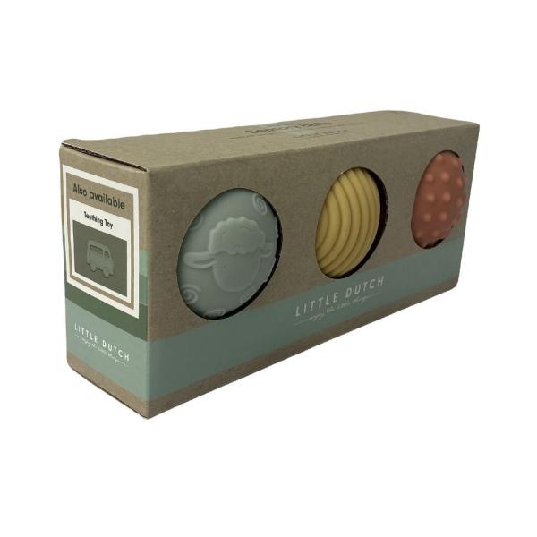 Die Little Dutch Sensorikbälle aus der Little Farm Kollektion eröffnen Babys ab sechs Monaten eine spannende Welt voller Spielspaß und Entdeckungen. Dieses Set besteht aus drei liebevoll gestalteten Bällen in Grün, Orange und Gelb, die jeweils mit einer eigenen Textur versehen sind. Unterschiedliche Oberflächen regen die Sinne an, fördern die Neugier und machen das Spielen zu einem abwechslungsreichen Erlebnis.