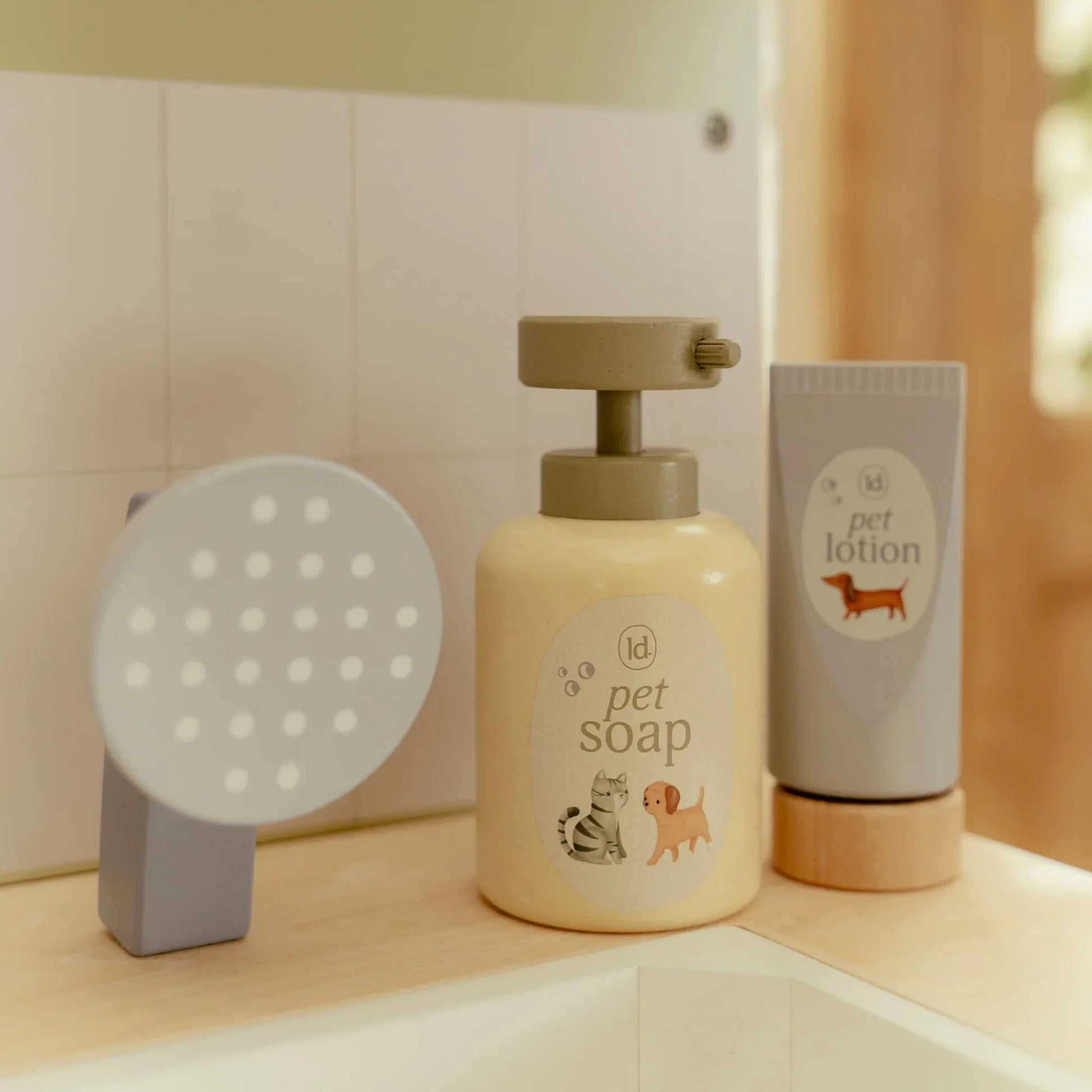 Die Little Dutch Tierarztpraxis aus Holz in Grün ist das perfekte Spielset für kleine Tierliebhaberinnen und Tierliebhaber. Kinder ab drei Jahren können in die Rolle eines echten Tierarztes schlüpfen und sich liebevoll um ihre Kuscheltiere und Spielzeugtiere kümmern. Die Praxis ist umfangreich ausgestattet und bietet alles, was für die Versorgung kleiner Patienten gebraucht wird. Besonders spannend ist die ausziehbare Duschbrause mit passendem Waschbecken, mit der die Tiere gewaschen werden können. Außerdem gehören ein Kamm, ein Thermometer, eine Spritze und Pflaster zum Set. Damit das Rollenspiel noch realistischer wird, sind auch ein Stoffstirnband und eine spezielle Klammer enthalten, an der medizinische Illustrationen oder Röntgenbilder aufgehängt werden können.