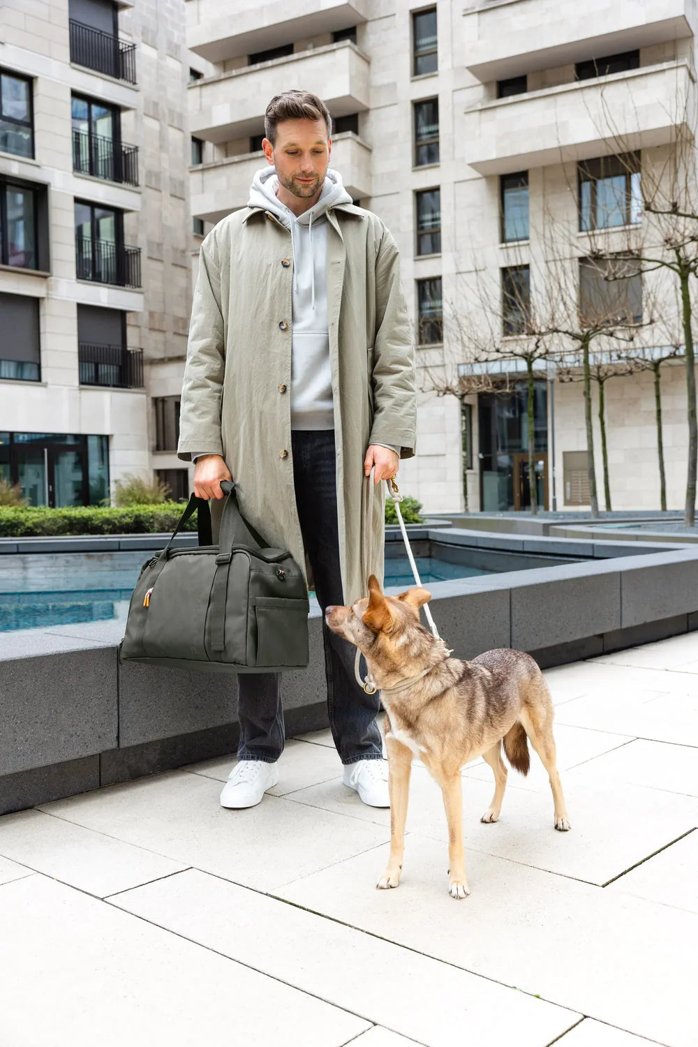 Für maximalen Komfort bietet der Weekender Tokano verschiedene Tragemöglichkeiten. Ob in der Hand, über der Schulter mit dem gepolsterten, abnehmbaren und längenverstellbaren Gurt oder ganz bequem am Trolley die Tasche passt sich flexibel an deine Bedürfnisse an. Eine breite Schlaufe an der Vorderseite mit elastischen Bändern ermöglicht zudem die einfache Anbringung einer Hundematte oder anderer Accessoires. Gefertigt aus recyceltem Polyester mit robuster Polyurethanbeschichtung überzeugt der Weekender durch Strapazierfähigkeit, schmutz- und wasserabweisende Eigenschaften sowie schnelltrocknendes Material. Damit ist er nicht nur praktisch und langlebig, sondern auch pflegeleicht und ideal für Reisen mit Hund geeignet.